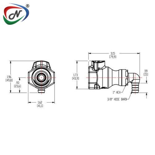 97800 3/8 HB Valved Elbow Polypro Molded Grey Coupling Body FDA Buna O-Ring (UDC)